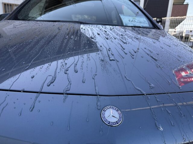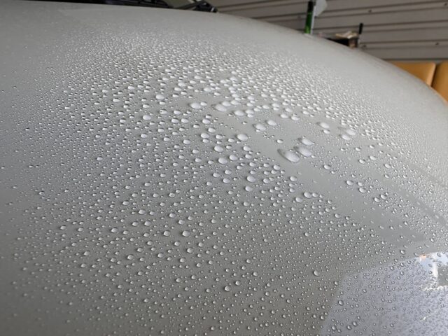 まだ水の接触角が大きく、玉の様に撥水してます。